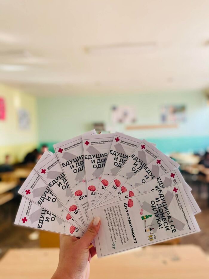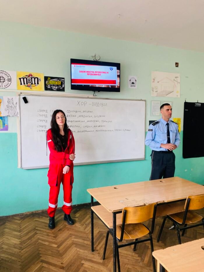 Црвен крст на Република Северна Македонија – Општинска организација Штип продолжува со своите едукативни активности во насока на превенција од болести на зависности кај младите. Во рамки на проектот „Превенција од зависности“, поддржан од Министерството за образование и наука, во соработка со Министерството за Внатрешни работи, беа реализирани повеќе едукативни предавања на ученици од прва и втора година во ДСУ РЦСОО „Коле Нехтенин“, при што беа опфатени вкупно 120 ученици. Преку интерактивна и едукативна презентација на тема „Зависности – препознај и превенирај“, учениците имаа можност да се запознаат со причините за појава на зависностите, нивните последици врз здравјето и општеството, како и со начините за нивна превенција. Се дискутираше за зависности од цигари, алкохол, дроги, коцкање, како и за современи облици на зависности со кои младите денес се соочуваат. Активноста беше насочена кон поттикнување на критичко размислување, одговорно однесување и донесување здрави животни избори. Учениците активно учествуваа со свои прашања и размислувања, придонесувајќи за динамична и поучна атмосфера.